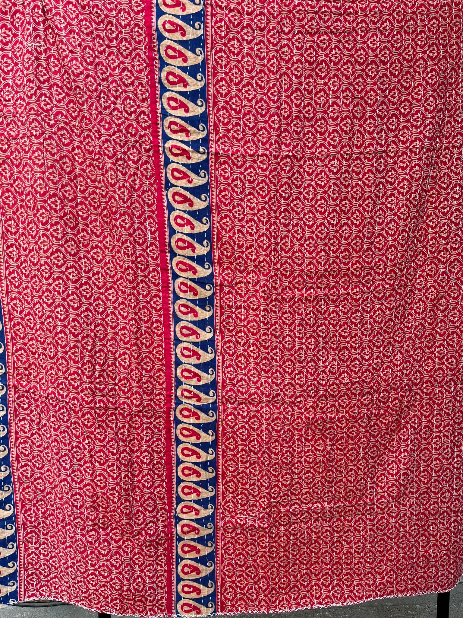 Reversible Indian quilts are made with similar or opposite color vintage fabrics. Extra texture and design with Kantha stitching. Note: Colors may be slightly lighter than they appear in pictures. May find stains or small patches on the stole that mark an artist's signature.